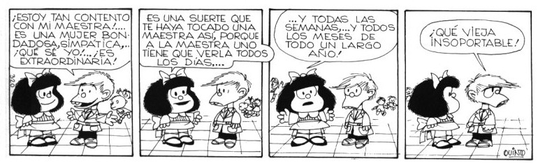 Quino, su autor, que los sumerge allí para dar de ella, como de todo lo demás,
